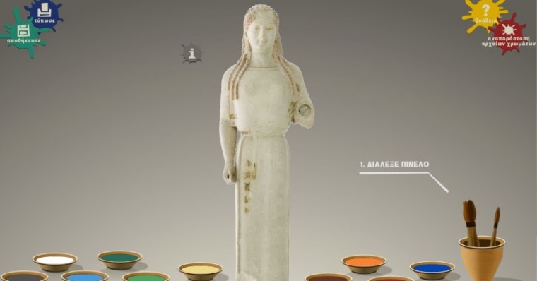 Οι μικροί επισκέπτες έχουν τη δυνατότητα συμμετοχής στην εκθεσιακή δράση «Αρχαϊκά Χρώματα» στο σπίτι τους, μέσα από το ψηφιακό παιχνίδι. Εκεί μπορούν να διαλέξουν το πινέλο και τα χρώματα που επιθυμούν, χρωματίζοντας το άγαλμα της Πεπλοφόρου και αποθηκεύοντας ή τυπώνοντας το έργο τους όσες φορές επιθυμούν και με πολλές απίθανες παραλλαγές.