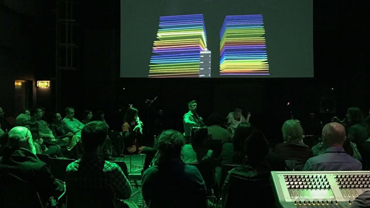 VR headsets are necessarily about what you see. However, we found that the tactile feedback from the hand-held controllers – through which a user accesses a menu and press commands to reach content – allowed this particular musician to play the instrument by feeling and hearing it, rather than seeing it through the headset. Not having to rely on the headset also meant she could maintain visual contact with other musicians during the performance.