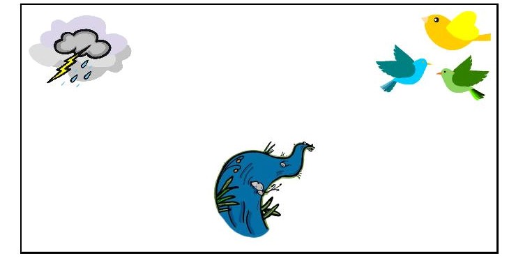 Μια ηλιόλουστη ανοιξιάτικη μέρα, μια οικογένεια αποφάσισε να πάει με το αυτοκίνητό της για πικ νικ στην εξοχή. H μητέρα οδηγεί με ανοιχτά παράθυρα. Το κελάηδημα των πουλιών ήταν τόσο χαρούμενο που σταμάτησε στην άκρη του δρόμου για να το απολαύσουν όλοι μαζί. Σε λίγο άρχισε πάλι να οδηγεί στο καταπράσινο λιβάδι, ώσπου συνάντησε ένα ρυάκι που μουρμούριζε καθώς κυλούσε πάνω από τις πέτρες. Το μουρμούρισμα ήταν χαλαρωτικό. Το άκουσαν όλοι για λίγο και συνέχισαν ψάχνοντας για το κατάλληλο μέρος να σταματήσουν για το πικ νικ κοντά στο ρυάκι. Ξαφνικά άκουσαν δυνατές βροντές και μια καταρρακτώδης βροχή άρχισε να πέφτει. Έκλεισαν βιαστικά τα παράθυρα του αυτοκινήτου και σταμάτησαν σ’ ένα ασφαλές σημείο περιμένοντας το τέλος της καταιγίδας. Ευτυχώς σε λίγο σταμάτησε η καταιγίδα και το αυτοκίνητο ξεκίνησε ξανά. Τα πουλιά άρχισαν ένα ένα να κελαηδούν και πάλι. Όλα όμως ήταν βρεγμένα και δεν θα μπορούσαν να καθίσουν κάπου για πικ νικ. Έτσι αποφάσισαν να κάνουν για λίγη ώρα ακόμα βόλτα με το αυτοκίνητο και να γυρίσουν στο σπίτι για να φάνε.