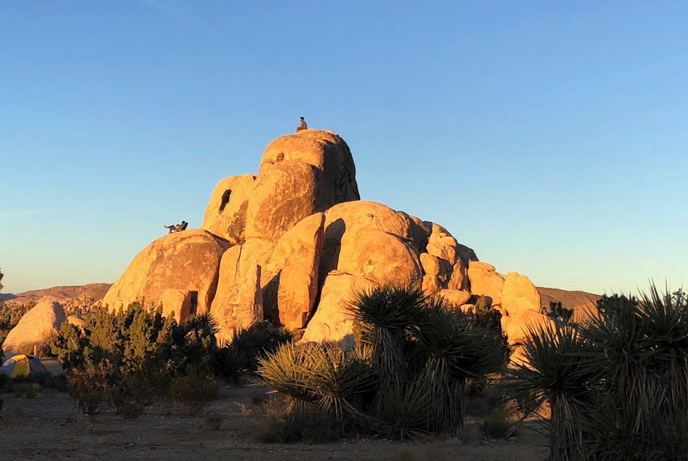 Central photo: Imagine this with a sound track – sunset near Turtle Rock, Joshua Tree National Park. NPS / Hannah Schwalbe